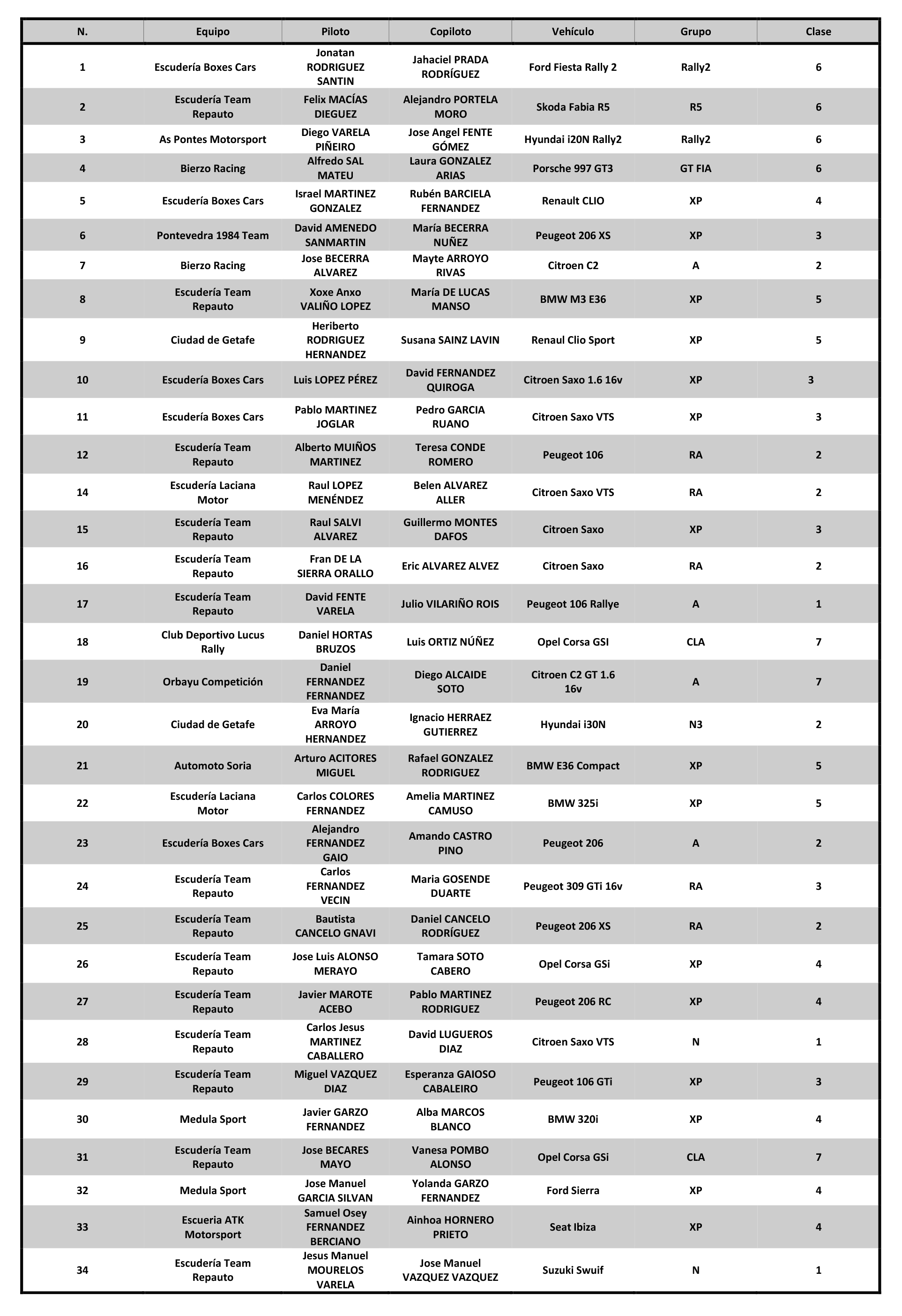 Lista Incritos VI Rallysprint Igueña 2025